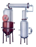 2.为克服浓缩罐顶二次蒸汽在未进入冷凝器前被冷凝而返回罐内的缺点。本设备将冷凝器改为斜卧式;